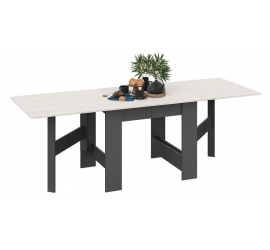 В сложенном состоянии раскладной стол выглядит как узкий корешок книги, облаченный с двух сторон в «обложку» – по бокам его прижимают столешницы. Удобно, что поднимая одну из них, человек не нарушает устойчивость изделия.